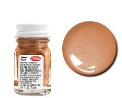 This is a 1/4oz bottle of copper enamel paint from Testors. Testor All purpose Enamels are fast drying, easy to apply and can be used on many kinds of surfaces. Finely ground pigments mean superb flow and coverage. All colors are carefully controlled from batch to batch and each bottle color exactly matches its corresponding aerosol spray color. Testor bottle and aerosol spray enamels are all lead free.