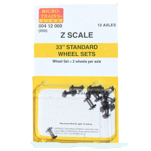 Standard 33" scale plastic wheelsets for Z gauge. A dozen sets per package.