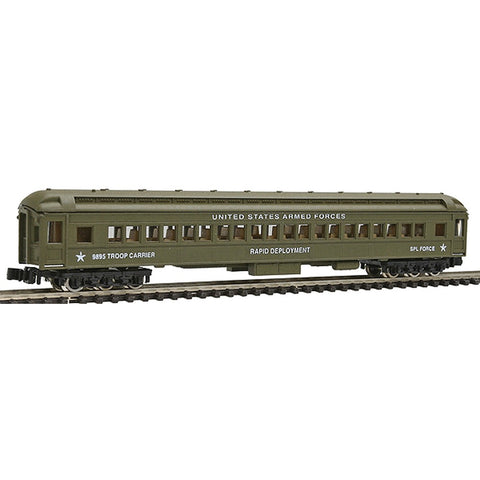 N Scale 80-foot Harriman Coach with knuckle coupler and metal wheels, and spotlight load that lights up.