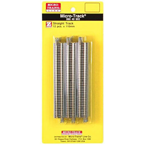 Twelve (12) pieces per package. Each track piece is 4.33 inches long (110mm).