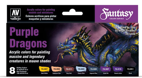 VALLEJO 17ml Bottle Fantasy Purple Dragons Game Color Paint Set (8 Colors)