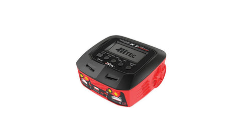 The expansion of the Hitec charger line continues with the introduction of our X2 AC Plus Black Edition AC/DC Dual Balance Charger/Discharger with built-in power supply. With increased capacity and compatibility, this portable, compact and reliable charging unit affords flexible charging of all battery chemistries whether you are at home or in the field. Its leading-edge power distribution mode allows efficient assignment of output power based on individual battery requirements while the Voice Guide feature makes for easy, user-friendly communication. With a built-in 10-amp power supply, internal balancing circuits and 10 different charge/discharge profiles, the X2 AC Plus Black Edition is an absolute powerhouse. Featuring our "SCAN TO GO" and Smartphone control via Bluetooth, this charger delivers the high performance and convenience that you can always expect from Hitec.