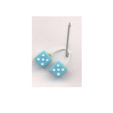 This is the 1/24-1/25 Scale Baby Blue w/White Dots Fuzzi Dice by Ken's Kustom Kar Supply.