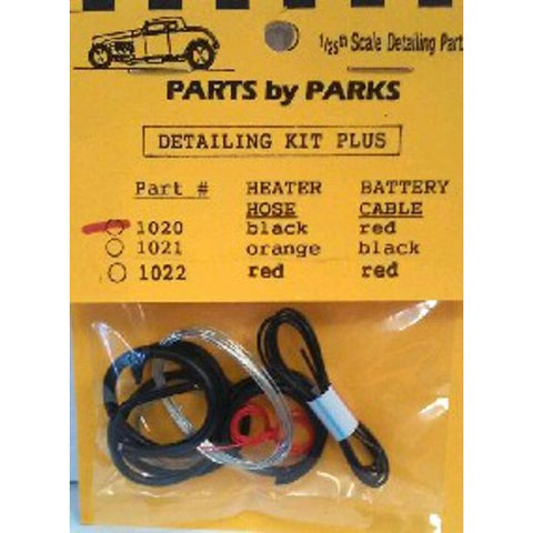 PARTS BY PARK 1/24-1/25 Detail Set 1: Radiator Hose, Black Heater Hose, Red Battery Cable & Tinned Copper Wire for Brake/Fuel Lines & Carburetor Linkage